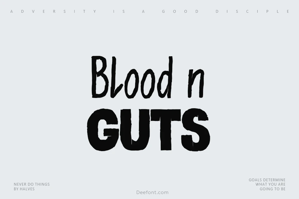 Blood’n’guts Font is a rugged and bold typeface inspired by vintage war and action comics from the 1950s. Its hand-crafted design features distressed, jagged edges that evoke a sense of intensity and chaos, making it perfect for projects with a gritty or adventurous theme. The font includes two styles, “Title” and “Regular,” which are ideal for headlines, captions, or dramatic text blocks. With its dynamic and attention-grabbing appearance, Blood’n Guts is well-suited for horror posters, edgy branding, or retro-themed designs. This versatile font brings a raw and energetic aesthetic to any creative project.