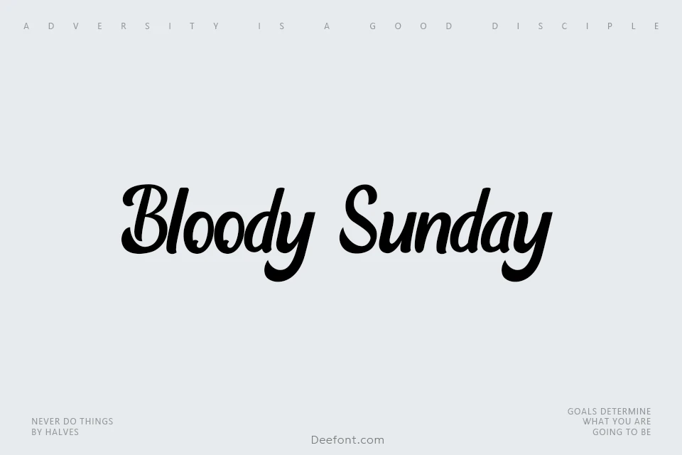 Bloody Sunday Font is a bold retro script font featuring alternates, ligatures, and swash elements to create captivating typography. This font is perfect for a wide range of creative projects, including signatures, stationery, logos, wedding invitations, typography quotes, magazine or book covers, website headers, clothing designs, branding, and packaging. Its versatile style suits both masculine and feminine editorial or branding displays, making it an excellent choice for fashion-related and modern design needs.