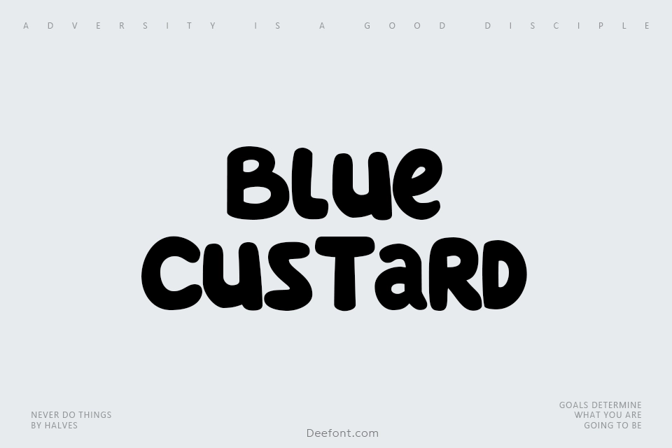 Blue Custard is a playful and delightful display font inspired by the beloved children’s television series “Bluey”. Designed by rockcake, this donationware font features rounded, bubbly characters with a semi-light weight that brings a whimsical and charming essence to any project. Perfect for DIY crafts, Bluey-themed parties, personalized merchandise, greeting cards, and custom t-shirts, Blue Custard adds a fun and affordable flair to creative endeavors. With its cartoon style and friendly appearance, this font invites you to infuse your creations with joy and imagination.
