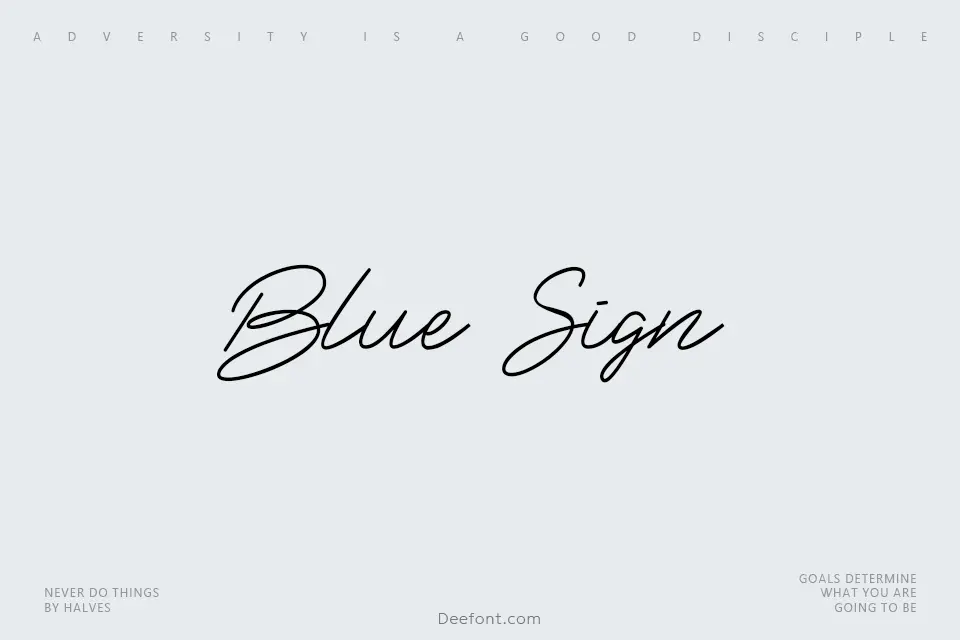 Blue Sign Font brings a confident handwritten signature style, with smooth curves, sweeping baselines and slightly bouncy letterforms that feel friendly yet expressive. Its bold strokes and natural ink texture make it ideal for branding, logo marks, posters, invitations, packaging and social media headers.