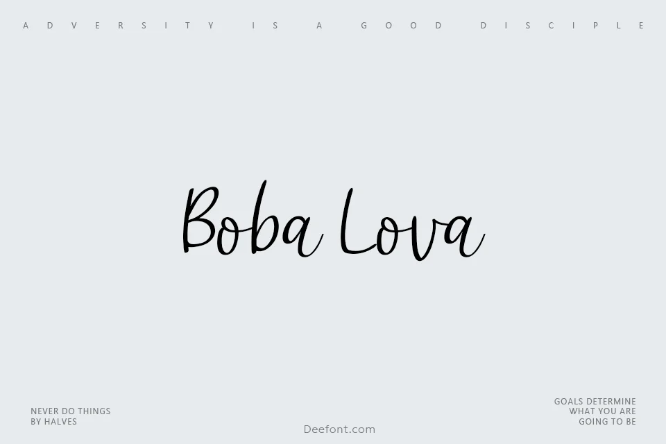 Boba Lova is a modern, handwritten script font brimming with personality and curves. Designed by AminMario, this elegant typeface brings a natural handwritten aesthetic to digital designs, featuring playful strokes and delicate letterforms perfect for invitations, branding, and creative projects requiring a charming, personal touch.