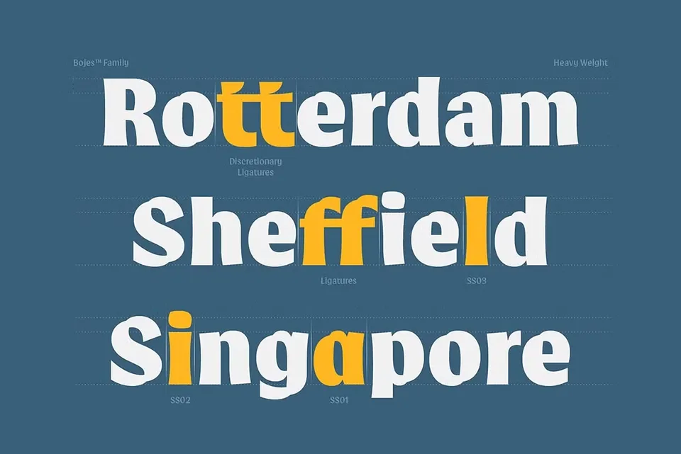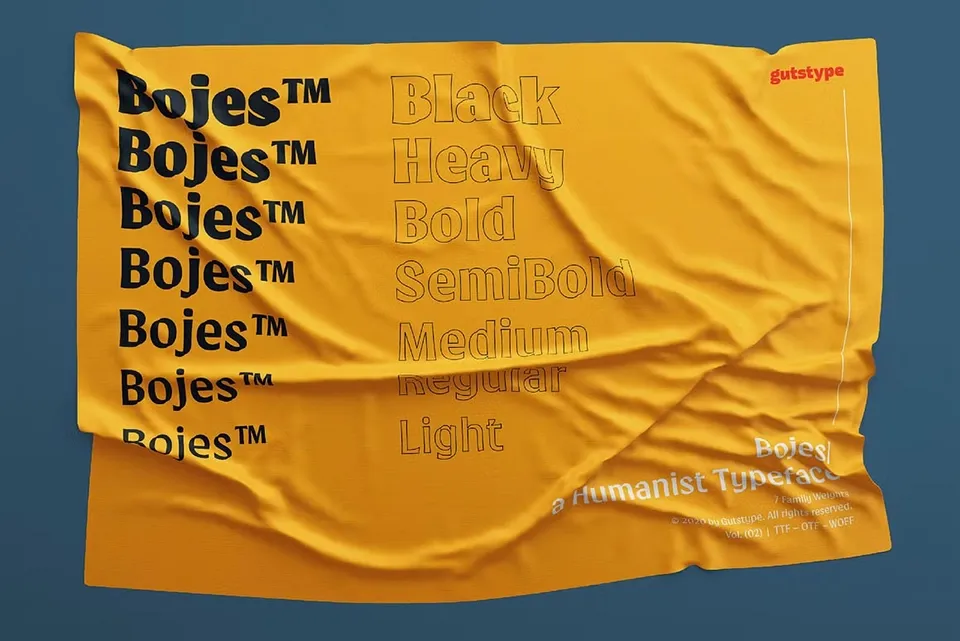 Bojes Typeface is a humanist sans serif font family featuring a clean and modern aesthetic. With 7 family weights ranging from light to heavy, it is versatile and suitable for design magazines, posters, branding, and more. Its humanist style ensures readability and elegance, making it an excellent choice for a variety of creative projects.