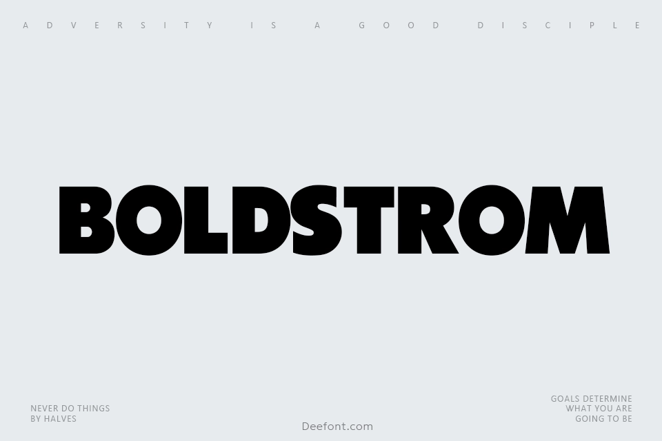 Boldstrom is a bold, all-caps display font featuring heavy-handed characters with strong line weight and minimal contrast. This powerful sans serif typeface is defined by broad stems and tight curves, designed to command attention in large format print, titling, posters, and logos. With extensive character support including Basic Latin, extended Latin, diacritics, Cyrillic, and Greek, Boldstrom delivers versatile, impactful typography for creative projects demanding visual presence.