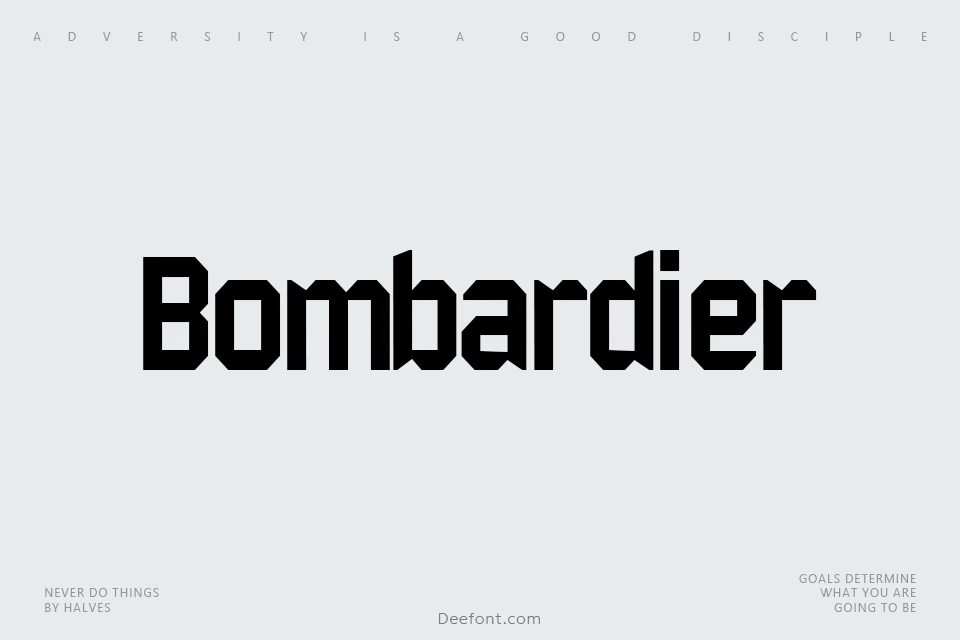 Bombardier Display Font is a bold, sharp display typeface inspired by the game Risk of Rain 2, featuring a blocky and industrial design. It supports both Latin and Cyrillic characters, making it suitable for a wide range of creative projects including tech branding, gaming logos, posters, and headlines. Its rigid corners and tall lettering ensure maximum visual impact for any display use.