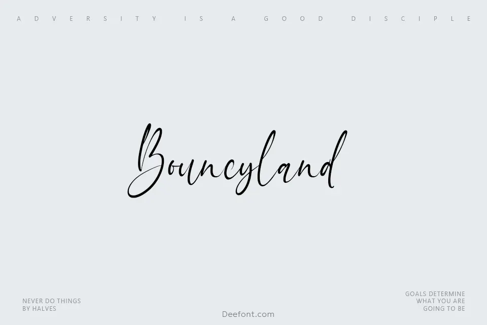 Bouncyland Font is a lively handwritten script with bouncing baselines, rounded strokes and casual letterforms that feel friendly and energetic. Its playful rhythm suits kids posters, party invitations, cute branding, packaging, quote designs and standout social media headers for birthdays, crafts, children’s books and cheerful seasonal campaigns.