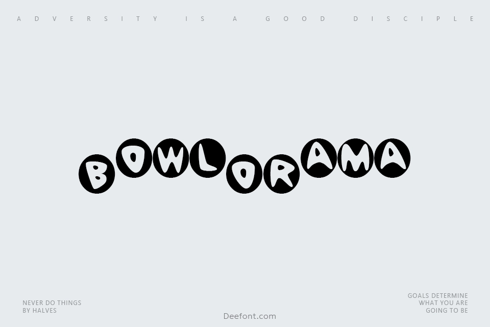 BowlORama is a playful and bold display font featuring characters enclosed in circular shapes, reminiscent of bowling balls. Created by Font Diner, this whimsical typeface has a hand-drawn quality with quirky letters ideal for fun and informal projects. Perfect for children’s books, party invitations, and retro-themed designs, BowlORama brings a distinctive 1950s-inspired character to any creative endeavor. The font supports 90 unique glyphs and maintains consistent circular themes across uppercase, lowercase, and special characters. Its eye-catching style makes it particularly effective for logos, posters, and decorative typography projects requiring personality and charm. Released in 1998, BowlORama remains a beloved choice among designers seeking distinctive display typography.