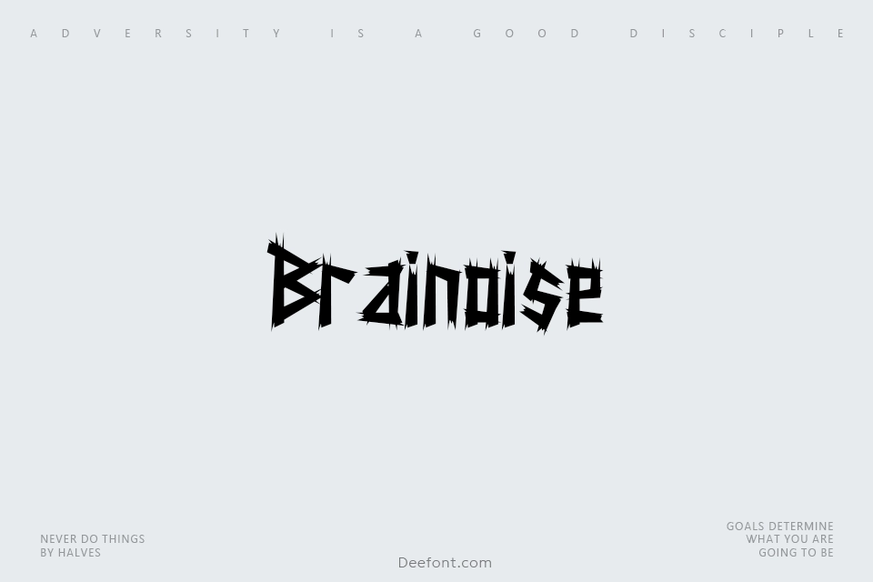 Brainoise is a bold, contemporary display font designed for creative professionals. With its distinctive modern aesthetic and striking gothic influence, this font excels in eye-catching headings, posters, and branding projects. The design combines contemporary styling with decorative flair, making it an excellent choice for designers seeking a unique typeface that commands attention. Featuring comprehensive glyph support with 214 characters, Brainoise delivers versatility and visual impact for projects requiring distinctive typographic expression.