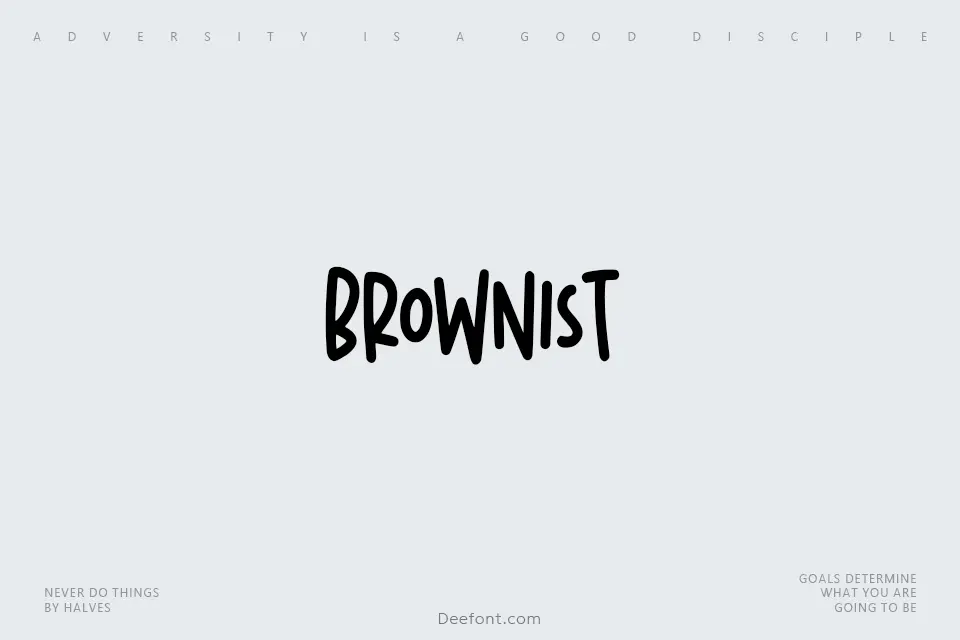 Brownist is a lively, youthful handwritten font crafted by Abo Daniel Studio, radiating whimsical charm through its casual, hand-drawn strokes. With a modern, playful vibe, it excels in t-shirt designs, quotes, mugs, tote bags, cards, banners, social media graphics, and craft projects. Its cheerful personality makes it ideal for branding, posters, logos, and invitations seeking a friendly, approachable aesthetic.