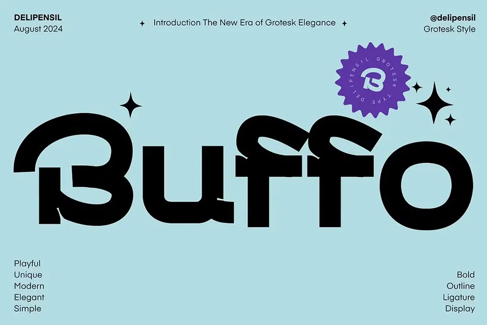 Buffo Font is a playful, unique, and modern grotesk display typeface that combines elegance with a bold, theatrical flair. Inspired by the comedic operatic term “buffo,” this font brings exaggerated and capricious forms to the forefront, making it perfect for standout branding, headlines, and creative projects that demand attention and character.