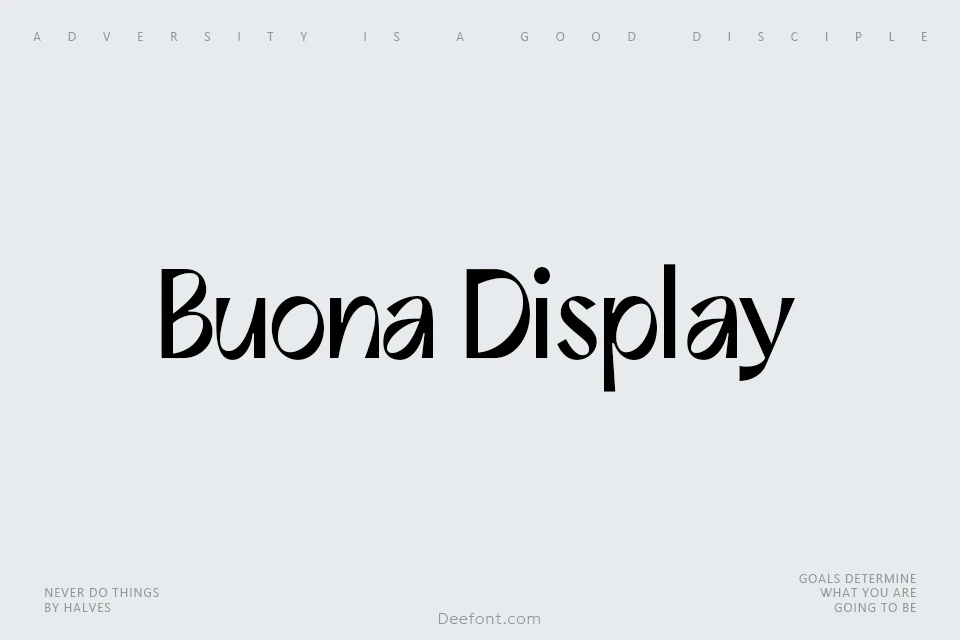 Buona Display Font Family is a bold and expressive sans serif typeface designed by IRL by Outfit. This versatile collection features 14 distinct styles with over 540 glyphs per style, bringing a unique blend of boldness and eccentricity to any creative project. Inspired by Italian typography heritage, Buona Display reverses the classic old-style diagonal axis, creating a vivacious yet refined aesthetic. Its sophisticated details shine at larger sizes, making it perfect for fashion labels, logotypes, editorial layouts, and billboard signage. With its rich OpenType features including ligatures, stylistic alternates, and multiple digit sets, Buona Display delivers contemporary style with subversive flair.