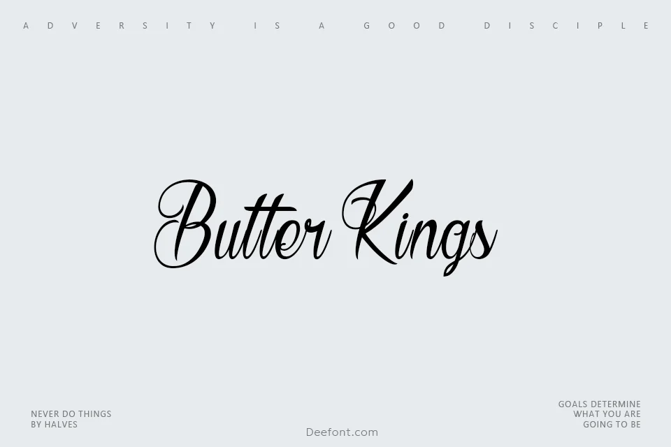 Butter Kings is an elegant script and calligraphy font that brings sophisticated artistry to your creative designs. With flowing letterforms and distinctive character, this versatile typeface is perfect for adding refined elegance to logos, invitations, posters, and decorative typography projects. The font features beautifully crafted glyphs that combine calligraphic charm with modern appeal, making it ideal for any designer seeking to elevate their visual storytelling with graceful, artistic letterforms.