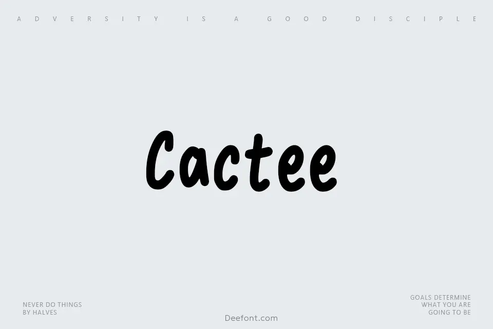 Cactee is a charming handwritten script font characterized by natural pen strokes and organic letterforms that evoke authentic writing. Its relaxed, playful aesthetic makes it ideal for digital note-taking applications, poster headlines, decorative titles, and creative branding projects. The font features 76 glyphs with balanced proportions suitable for medium-to-large display sizes, maintaining excellent readability while preserving the intimate, human touch of genuine handwriting. Perfect for designers seeking casual elegance.
