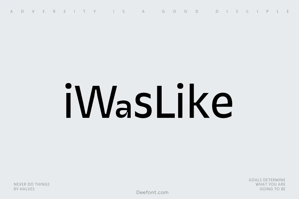 CAL iWasLike Pro is a modern sans serif font family created by California Type Foundry. Featuring a large x-height and an informal, friendly tone, it is designed for comfortable paragraph reading both on screen and in print. With 30 styles and over 1000 glyphs per font, it supports a wide range of languages and includes small caps, superiors, inferiors, fractions, circled numbers, music symbols, arrows, and more. Its even text shade and optimized design make it ideal for digital and print use, offering versatility and excellent readability for creative projects.