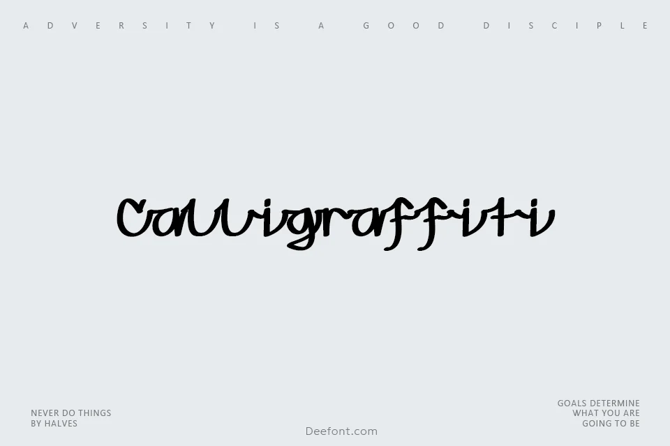 Calligraffiti is an elegant and sophisticated calligraphic script font that blends traditional calligraphy with modern artistic flair. Inspired by years of calligraphic expertise, this typeface features flowing curves, graceful strokes, and versatile letterforms perfect for elegant designs, invitations, branding, and creative typography projects. With its expressive character and refined aesthetics, Calligraffiti adds timeless beauty and sophistication to any creative endeavor.