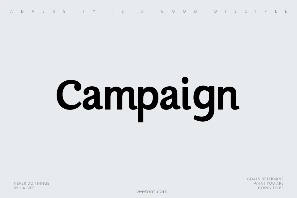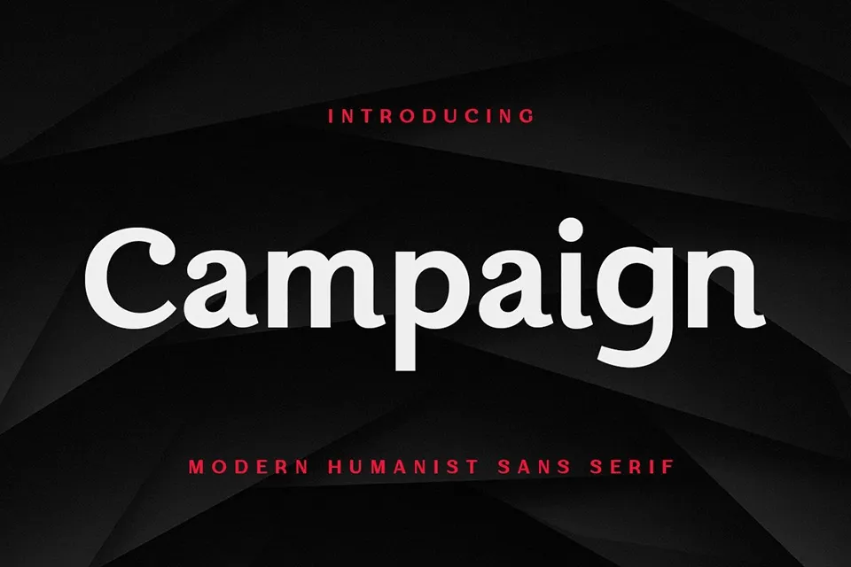 Campaign Sans Serif is a modern humanist sans serif font designed to make headlines, titles, and standout typography shine. Its elegant and stylish letterforms make it ideal for branding, product packaging, magazines, and display purposes, bringing a touch of sophistication and playfulness to any creative project.