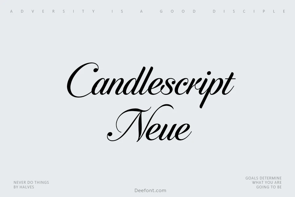 Candlescript Neue Font is a modern script font redesigned with all-new glyphs by M Fairuzulhaq (Semarang, Indonesia), also known as Vast. Inspired by classic copperplate calligraphy, it merges traditional elegance with a trendy, feminine style and a smooth baseline. With over 1500 standard glyphs, including uppercaps, smallcaps, numerals, punctuation, currency, symbols, and diacritical marks, it supports Cyrillic, Greek, and Latin scripts for over 115 languages. Candlescript Neue is perfect for monitor display or print projects of any size, offering high-quality detail and versatility for creative typography.