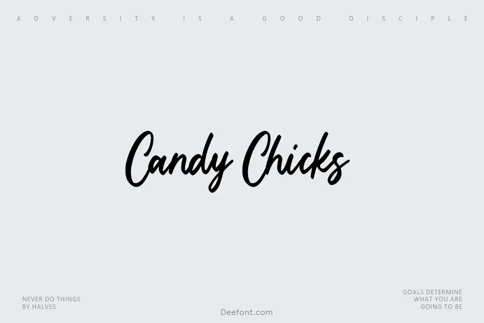 Candy Chicks is a lovely handwritten typeface featuring playful, fluid connected letterforms with a charming, approachable aesthetic. The font’s organic stroke quality and sweet character make it ideal for creative applications including logo design, wedding invitations, stationery, social media graphics, posters, and display materials. Its casual script style brings warmth and personality to projects that require a handcrafted, friendly feel, making it perfect for branding, event design, and personal projects seeking an endearing typographic voice.