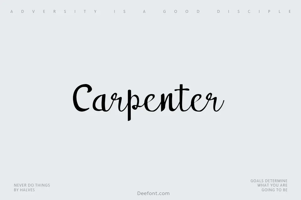 Carpenter is a distinctive handwritten script font featuring flowing, organic letterforms with a casual yet sophisticated aesthetic. Ideal for display typography, decorative titles, poster designs, and creative branding projects, this typeface delivers an artisanal character that brings warmth and personality to any creative work. With its natural brush-like strokes and rhythmic letterforms, Carpenter works exceptionally well for handmade aesthetic designs.