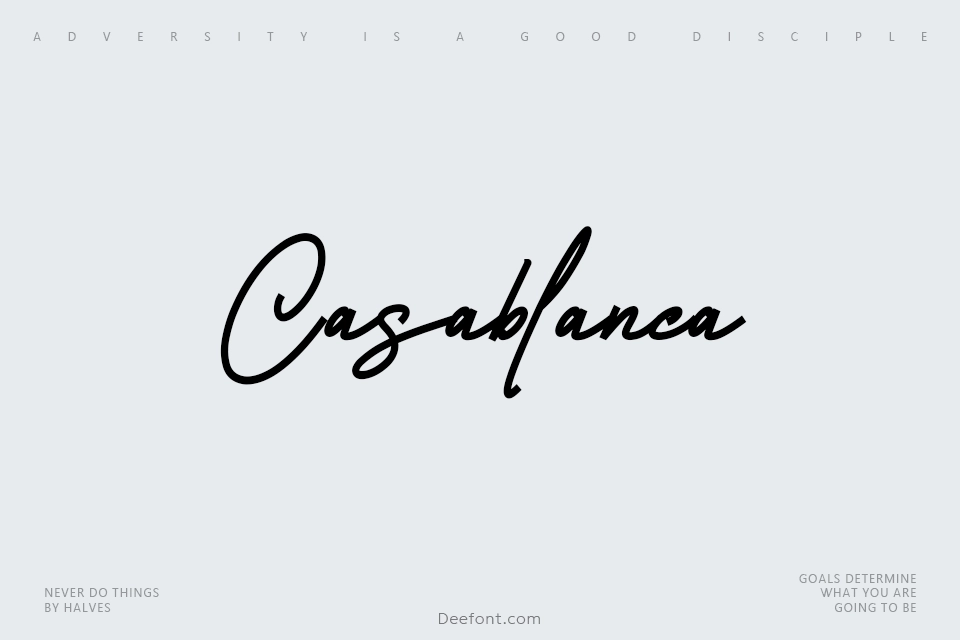 Casablanca is an exquisite handwritten font, masterfully designed to become a true favorite. It maintains its classy calligraphic influences while feeling contemporary and fresh. Fall in love with it and bring your projects to the highest levels!