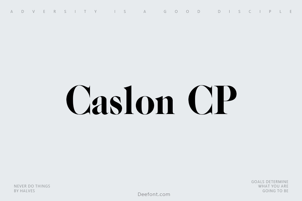 Caslon CP is a vintage serif font that combines classical elegance with modern minimalism. Created by ClaudeP, this sophisticated typeface features two styles: Caslon CP regular and Caslon CPswash. With its characteristic high horizontal crossbar and distinctive serif details, it brings a fresh and innovative approach to traditional serif design. Perfect for branding, logos, greeting cards, book covers, websites, and elegant typography projects that require a touch of vintage sophistication and trustworthy aesthetics.