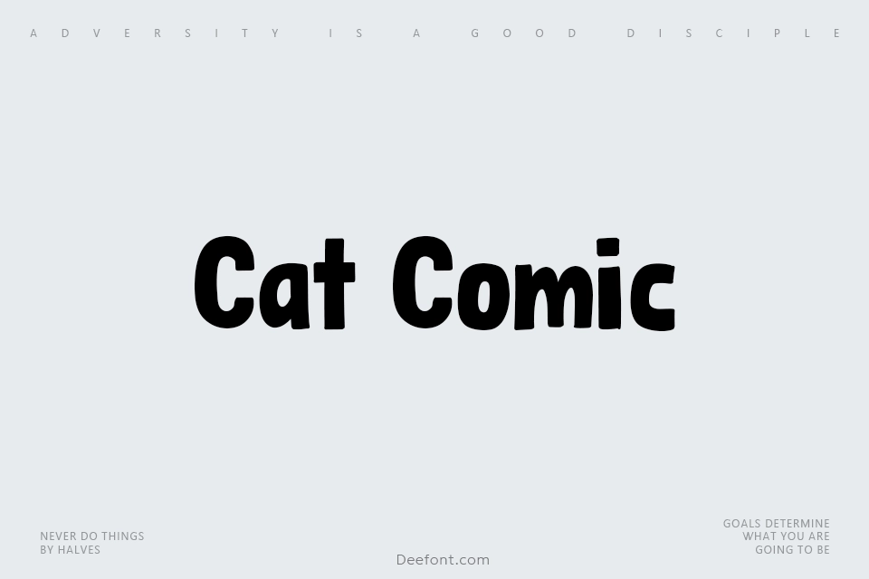 Cat Comic is a bold, cartoon-inspired display font designed by Khurasan, featuring distinctive rounded letterforms with strong character and playful personality. Perfect for children’s books, advertisements, packaging, and branding, this versatile typeface brings a fun and whimsical charm to any design project. With its carefree aesthetic and lively expression, Cat Comic seamlessly integrates into lighthearted creative work, adding personality and visual appeal to your typography.