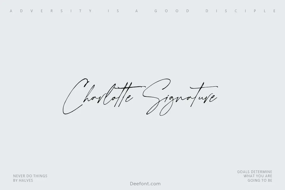 Charlotte Signature Font is a sophisticated script typeface designed by Type and Company. It features natural, flowing strokes that mimic authentic handwriting. This elegant font is perfect for luxury branding, photography watermarks, and wedding invitations. Its modern signature style adds a personal touch to business cards and social media graphics, ensuring a unique look.