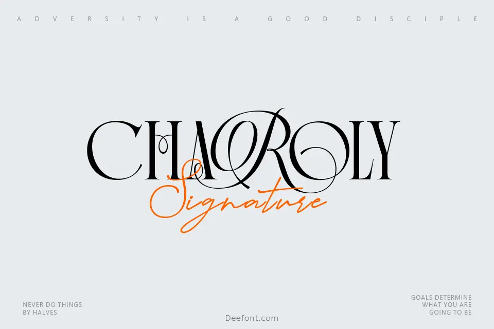 Charoly Signature Font Duo is a sophisticated and elegant typeface pairing that combines a graceful serif font with a charming script font. This duo is perfect for creating luxurious and artistic designs, offering versatility for branding, invitations, logos, and editorial layouts. The serif font exudes refinement with its clean lines and delicate curves, while the script font adds a personalized touch with its flowing, handwritten style. Charoly supports multilingual characters and includes alternates and ligatures, making it highly customizable for unique projects. Its timeless aesthetic makes it ideal for both modern and classic design applications.