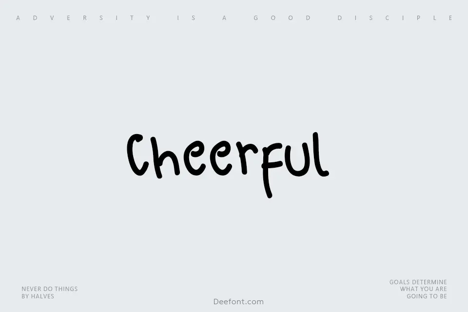 Cheerful Font is a lively handwritten script with smooth curves, bouncy rhythm and friendly strokes that instantly add warmth to your designs. Ideal for logos, greeting cards, quote graphics, seasonal posters, packaging and social media headers, it brings an approachable, human touch to any creative project.