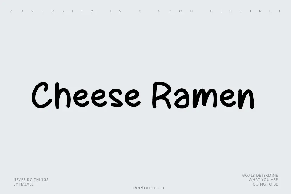 Cheese Ramen is an inspired handwritten script typeface crafted by MJType that brings warmth and playful character to modern design projects. With smooth, flowing letterforms reminiscent of melted cheese, this display font excels in children’s book illustrations, product packaging, social media graphics, and branding applications. The rounded, organic letterforms convey a friendly and approachable aesthetic, making it particularly effective for casual food-related designs, party invitations, lifestyle posters, and creative title work. Its distinctive personality transforms ordinary text into eye-catching display elements.