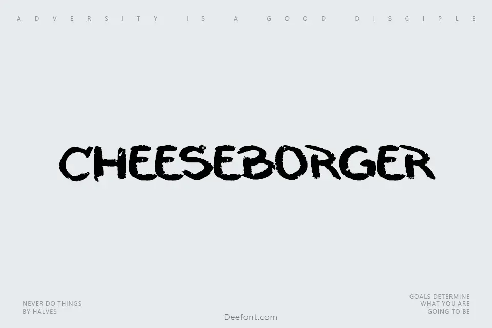 Cheeseborger Font is a distinctive display typeface characterized by its bold, rounded letterforms and chunky stroke weight, delivering a playful and whimsical visual impact. The font’s thick, irregular characters convey a sense of fun and approachability, making it ideally suited for creative applications including posters, headlines, greeting cards, food and snack branding, logo design, and casual presentation materials. With its cartoonish charm and engaging personality, Cheeseborger brings life and energy to any design project requiring a lighthearted, memorable aesthetic. The consistent rounded forms ensure legibility while maintaining strong decorative appeal.
