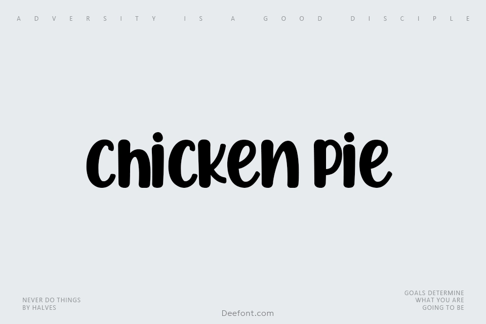 Chicken Pie Font is a bold sans-serif typeface created by Manjali Studio, featuring rounded, thick strokes and a playful personality. This carefully handcrafted font combines casual charm with excellent readability, making it wonderfully down-to-earth and incredibly versatile. With its whimsical flair and smooth flow, the font is perfect for headlines, logos, posters, branding projects, food packaging, and social media graphics. Its distinct personality brings a fun and engaging look to any design while maintaining professional quality.