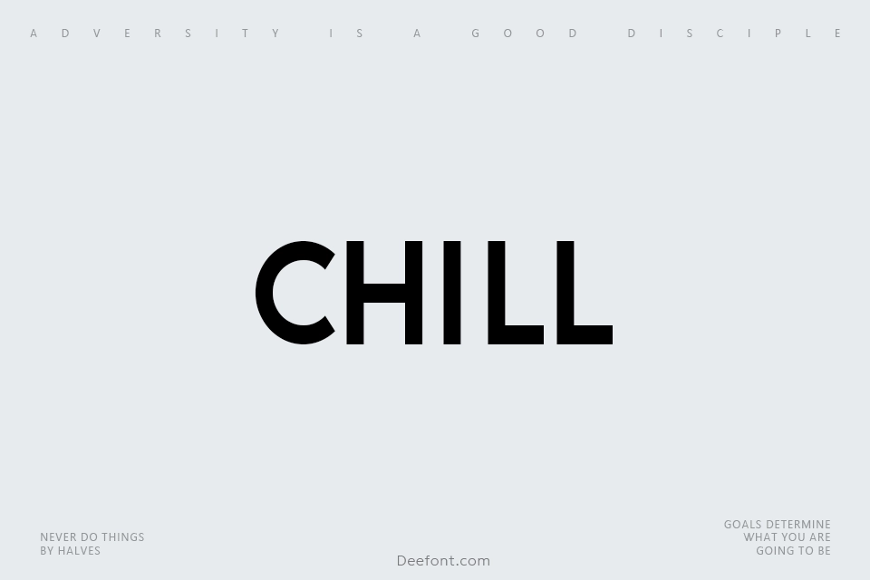 Chill is a contemporary sans-serif typeface that combines clean, modern aesthetics with a relaxed and friendly character. Designed with smooth, rounded letterforms, this versatile font exudes a casual yet professional vibe, making it ideal for branding, social media graphics, headlines, and creative projects. With its approachable design and 76 glyphs, Chill delivers an effortless sophistication perfect for any contemporary design endeavor.