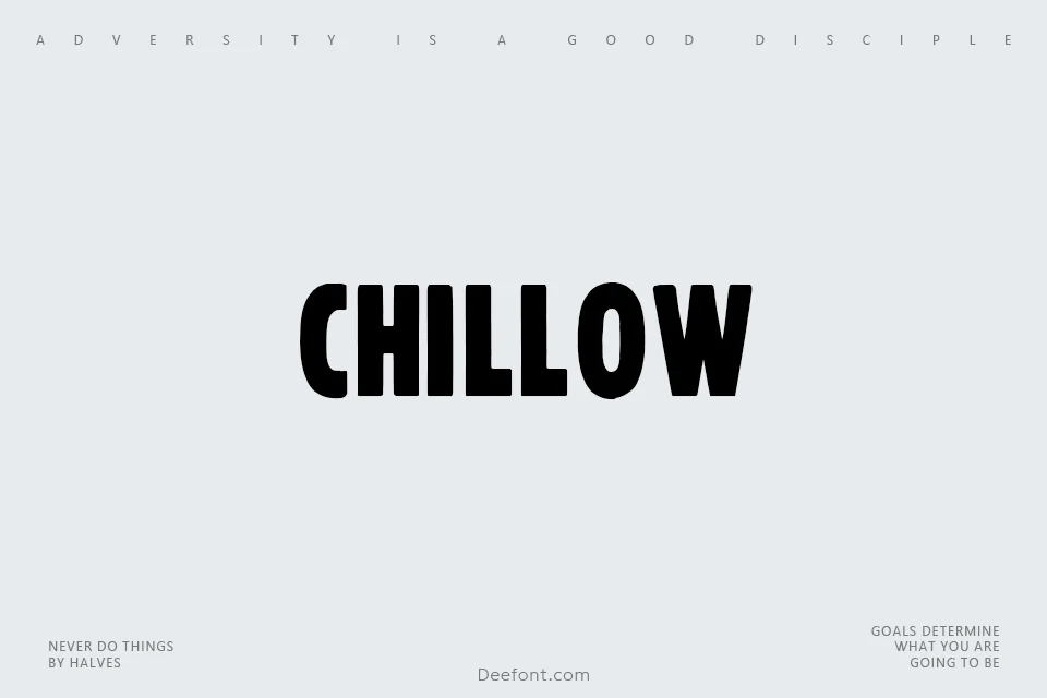 Chillow is a bold and hand-drawn sans serif typeface featuring rough and vintage character with a modern twist. This display font comes in two styles—regular and italic—and includes alternate characters and ligatures for creative flexibility. Perfect for logos, badges, vintage posters, and any design project requiring a retro aesthetic with contemporary appeal. Chillow’s chunky letterforms deliver a relaxed yet sophisticated presence suitable for headlines, branding, and display typography.