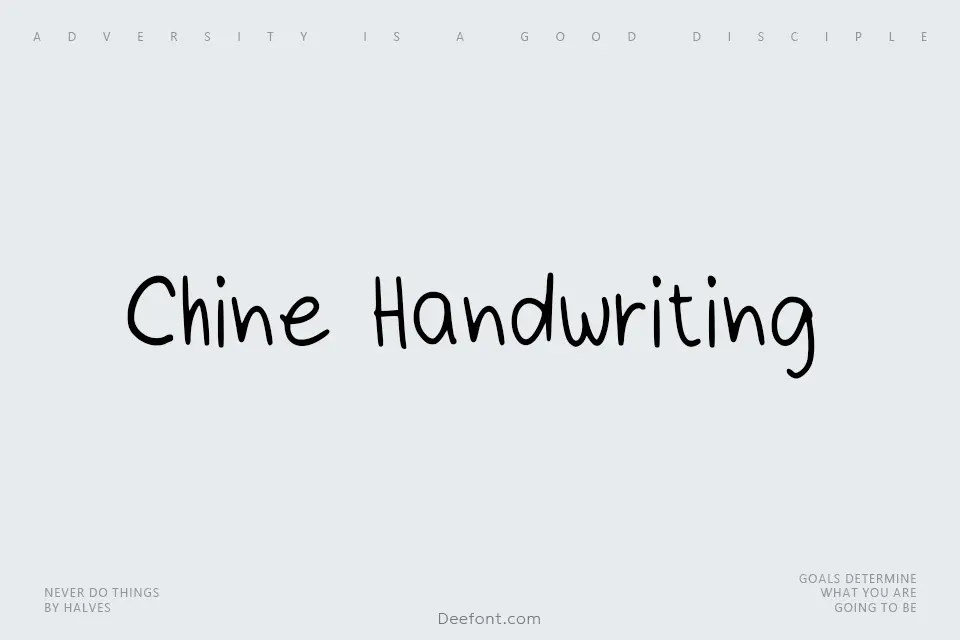 Chine Handwriting is a charming handwritten script font that captures the organic beauty of natural pen strokes. With its fluid letterforms and casual aesthetic, this typeface conveys warmth and authenticity. The font’s graceful curves and accessible style make it ideal for creative applications including poster design, eye-catching headlines, greeting cards, and display text where a personal, handcrafted feel is desired. Whether for social media graphics, branding projects, or invitations, Chine Handwriting brings an approachable elegance to any design composition.