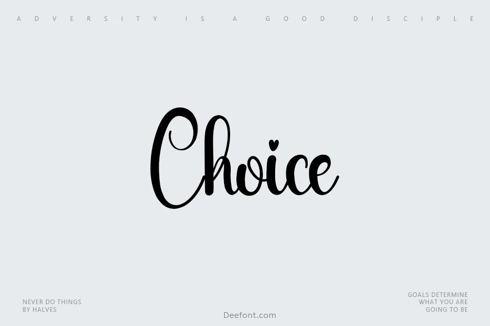 Choice Script Font is a sweet, friendly, and modern handwritten display font. Featuring creative and elegant strokes, this typeface is ideal for wedding invitations, greeting cards, branding, and any design that needs a playful or sophisticated touch. Its approachable style makes it perfect for both formal and informal creative projects.