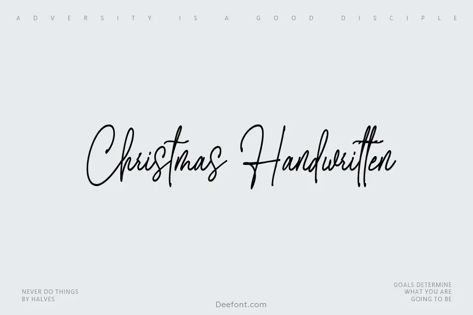 Christmas is a charming handwritten script typeface designed by Canoute Creative, featuring organic, flowing letterforms that capture the warmth and joy of the holiday season. With graceful cursive strokes and decorative characteristics, this display font excels at creating festive appeal for greeting cards, seasonal posters, invitation designs, and festive branding projects. The font’s natural handwritten aesthetic pairs beautifully with holiday-themed content, making it ideal for Christmas cards, festive social media graphics, seasonal packaging, and celebratory event materials. Its playful yet elegant script style conveys warmth and personal touch, perfect for designers seeking an authentic handwritten feel for holiday applications.