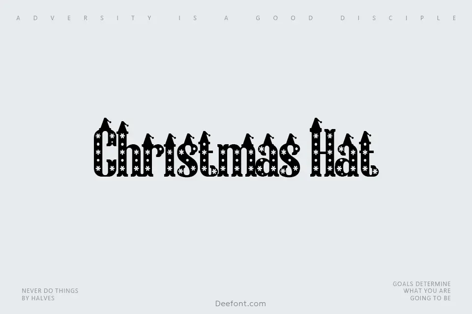 Christmas Hat is a festive decorative font that captures the joyful spirit of the holiday season. This playful typeface features charming Christmas-themed elements and whimsical letterforms perfect for holiday cards, seasonal promotions, festive invitations, and merry social media graphics. Designed with creative holiday projects in mind, Christmas Hat adds a cheerful, yuletide touch to any design while maintaining excellent readability for both digital and print applications.