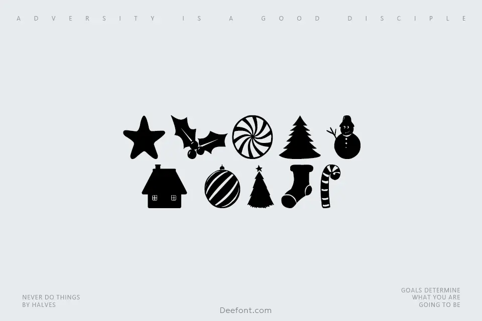 Christmas Shapes is a delightful dingbat font that captures the festive spirit of the holidays. Instead of letters, this font is composed of a variety of Christmas-related symbols and icons, making it perfect for creating unique holiday decorations, greeting cards, and themed designs. You can use its charming glyphs, which include everything from snowflakes and ornaments to candy canes and Christmas trees, to add a special touch to your seasonal projects. The whimsical and decorative nature of Christmas Shapes allows for endless creativity, whether you’re designing for print or digital media. It’s an excellent choice for anyone looking to infuse their work with the joy and magic of Christmas.