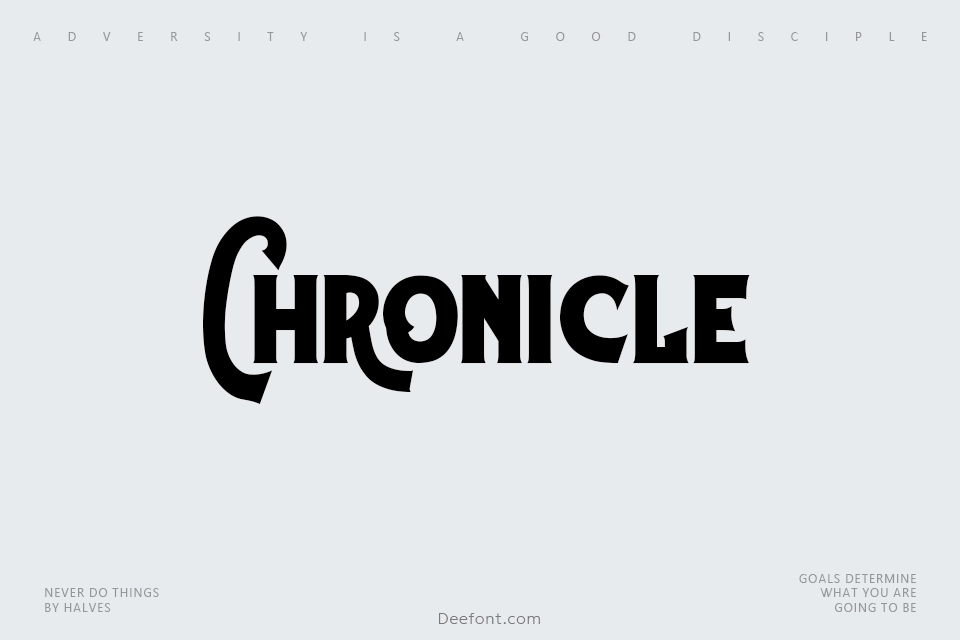 Chronicle is a vibrant display font featuring bold, decorative retro styling with eye-catching ornamental details and a dynamic 3D effect. Perfect for poster design, book covers, merchandise, fashion campaigns, branding, advertising, magazines, greeting cards, and album covers. This versatile typeface combines theatrical aesthetics with a slightly bold vintage-inspired look, making it ideal for artistic packaging projects and creative typography applications that demand unique visual impact and personality.