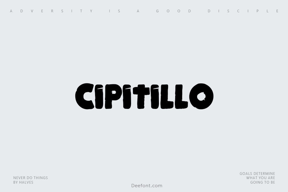 Cipitillo is a bold display font with distressed, eroded letterforms inspired by Salvadoran folklore and the legendary character “El Cipitío”. This spooky typeface features chunky, slightly irregular characters with rounded edges that convey a hand-drawn quality. Perfect for Halloween invitations, horror-themed posters, and creative branding projects, Cipitillo brings an edgy, playful aesthetic to any design requiring dramatic visual impact.
