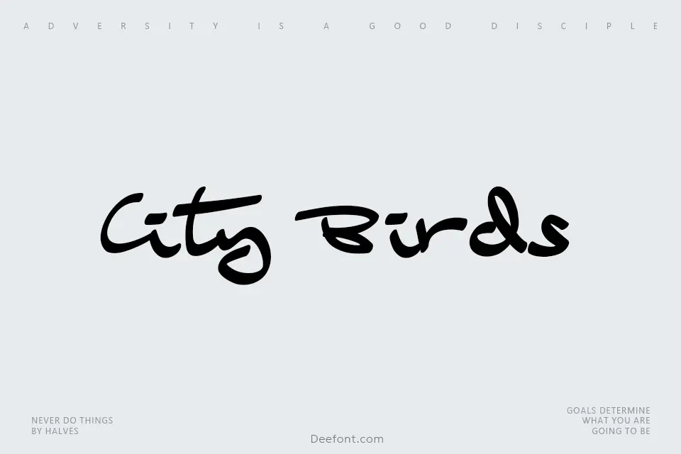 City Birds is a dynamic handwritten script designed by Roland Huse. Its casual, urban style captures the energy of quick street markers, ideal for trendy logos, posters, and packaging. With natural stroke variations and a relaxed flow, this font adds an authentic personal touch to digital projects. Available for personal use, it brings a free-spirited character to modern typography.