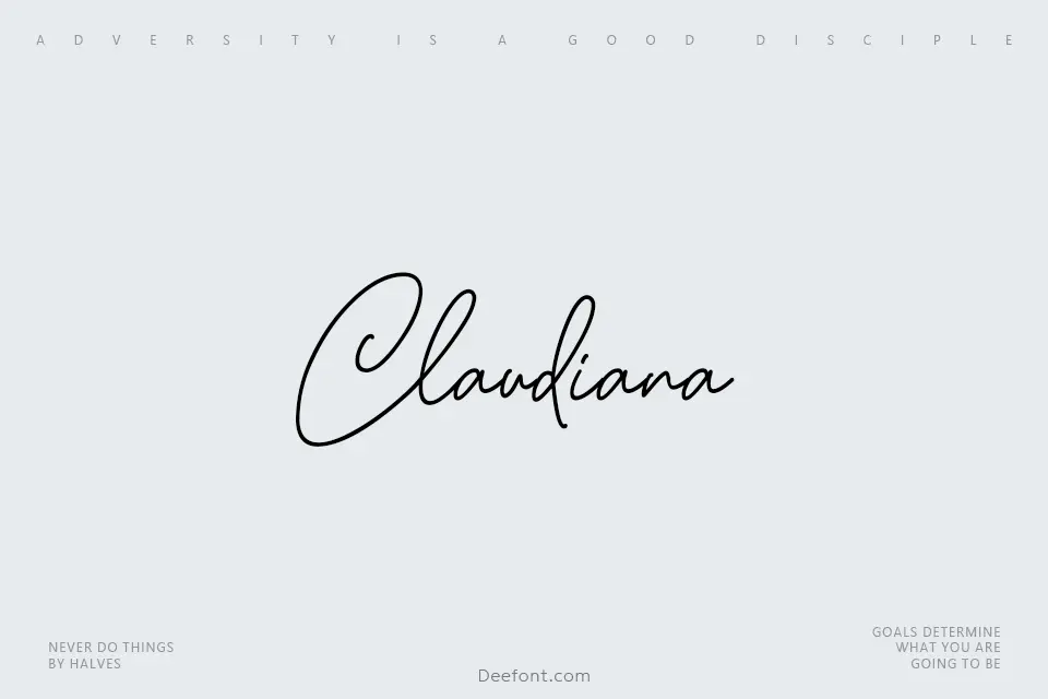 Claudiana is a sophisticated handwritten script font featuring graceful cursive letterforms and organic pen-stroke characteristics. Its flowing lines and elegant curves make it exceptionally suited for display purposes including poster design, logo creation, wedding invitations, fashion branding, and creative titling. The font’s natural handwriting aesthetic combined with refined proportions creates an ideal balance for both decorative and professional applications requiring a personal, artistic touch.
