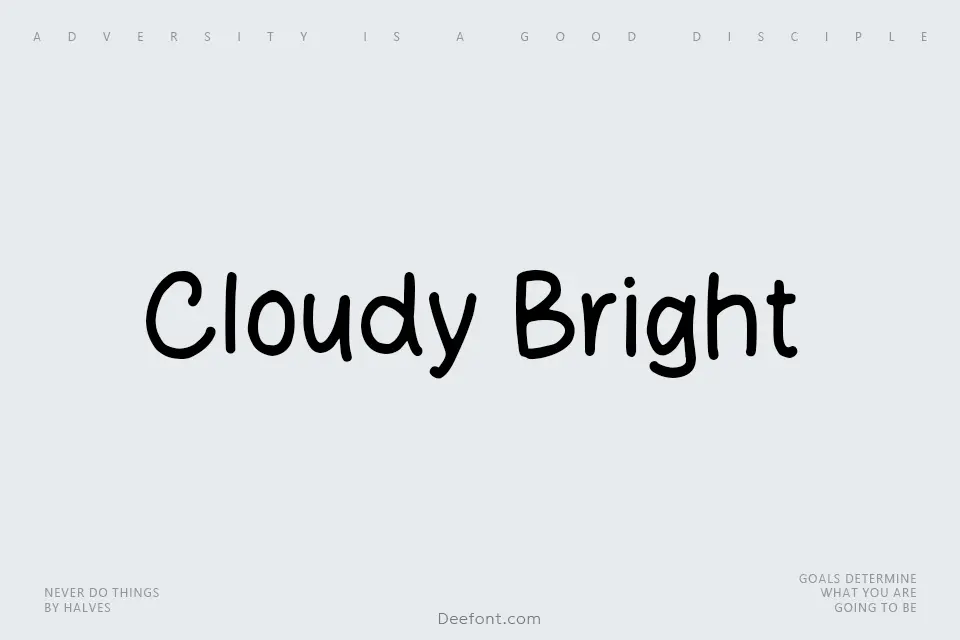 Cloudy Bright is a delightful handwritten script typeface featuring smooth, organic letterforms with fluid strokes and casual elegance. This font captures a relaxed, friendly aesthetic perfect for headlines, posters, invitations, and branding projects. Its rounded characters and charming personality make it ideal for greeting cards, social media graphics, packaging design, and creative display applications. The font’s authentic handwritten quality combined with legible letterforms allows it to stand out while maintaining readability for impact-driven designs.