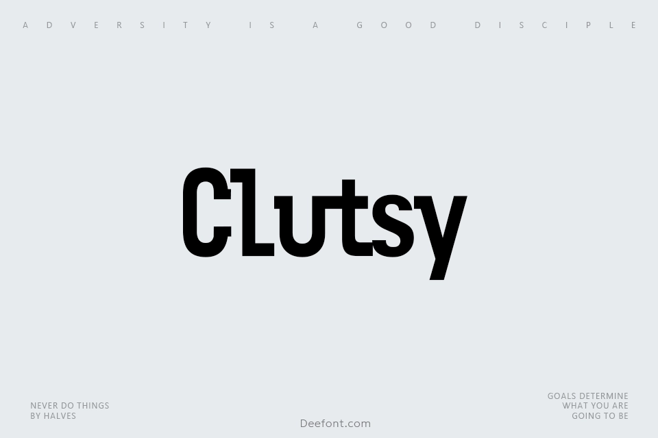 Clutsy is a versatile display font that brings character and personality to your designs. With its unique letterforms and creative flair, this typeface works excellently for posters, headlines, branding projects, and eye-catching compositions. The font’s distinctive style makes it perfect for designers seeking an unconventional yet readable solution for personal creative work.
