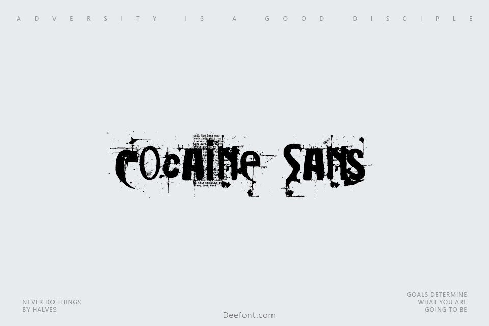 Cocaine Sans is a bold, edgy display typeface created by Christopher Hansen that captures attention with its raw energy and dynamic design. This distinctive font features unique flair combining elements of graffiti with high-end graphic design precision. Perfect for projects requiring dramatic visual impact, Cocaine Sans works exceptionally well for music album covers, avant-garde branding, fashion design, and eye-catching poster graphics. The font contains 655 defined characters and 79 unique glyphs, offering comprehensive language support including Latin, Greek, and Cyrillic scripts. With its provocative style and artistic merit, Cocaine Sans serves as both a statement piece and a powerful typography tool for designers who dare to challenge visual norms.