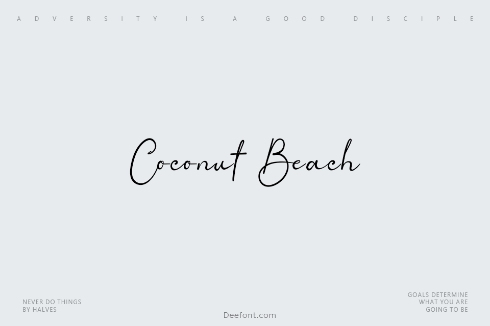 Coconut Beach is a flowing, cursive handwritten script font that exudes a relaxed and casual vibe. The elegantly connected letters feature smooth curves reminiscent of personal penmanship, offering a stylish and approachable design perfect for creative projects. Ideal for wedding invitations, greeting cards, personal branding, logos, and any project requiring a personal touch that combines elegance with warmth.