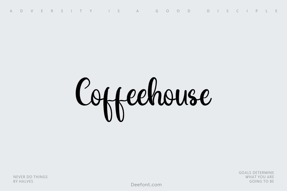 Coffeehouse is an elegant script typeface featuring dynamic, flowing letterforms with a sophisticated hand-drawn aesthetic. This versatile font combines classical elegance with contemporary flair, making it perfect for branding, invitations, and editorial design projects. The font’s smooth curves and balanced proportions deliver a professional yet approachable feel, bringing a touch of artistic character to any creative endeavor.