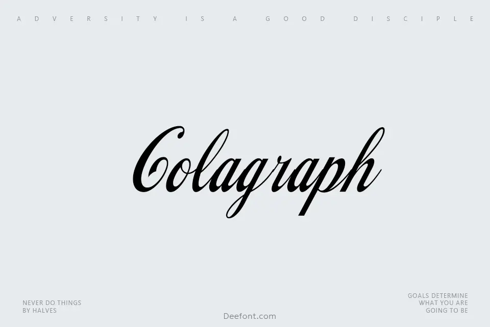 Colagraph is a dynamic script font designed by LyonsType, reviving the classic 1974 Cola Script aesthetic. With its fluid, ribbon-like strokes and retro energy, this typeface is ideal for vintage logos, beverage packaging, and nostalgic headlines. It captures the timeless spirit of 70s advertising, making it a perfect choice for bold, expressive displays.
