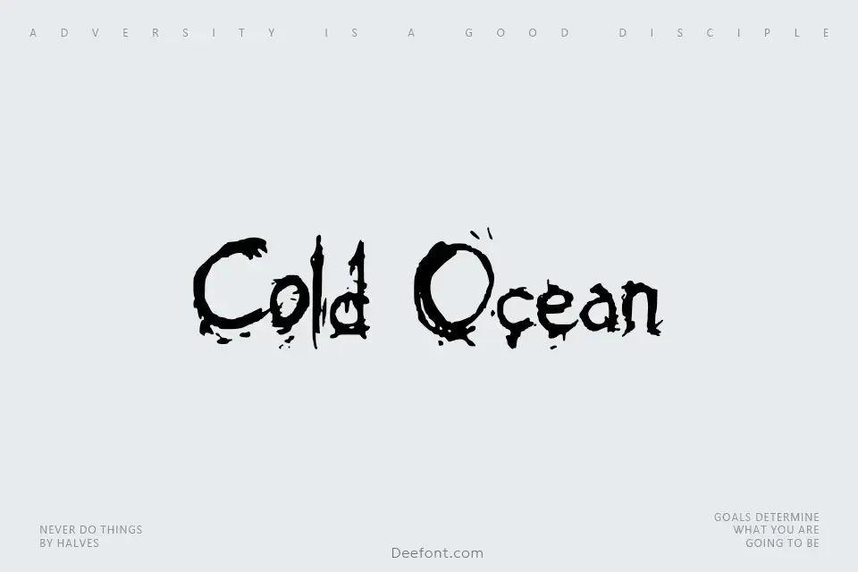 Cold Ocean is a striking display script font conveying cold, abandoned, and mysterious atmospheres with distressed elegance. Its weathered letterforms feature irregular edges and aged characteristics, making it ideal for horror movie titles, vintage posters, Halloween designs, dark branding, and atmospheric editorial projects. The font’s handwritten script style blends classic elegance with grunge sensibilities, perfect for designers seeking moody, otherworldly typography for dramatic visual impact.