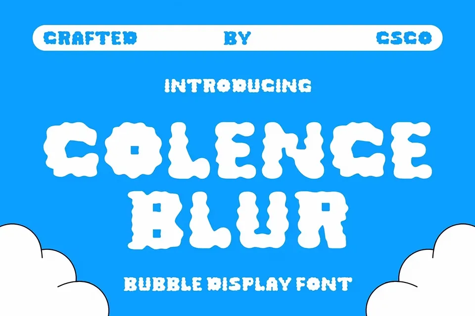 Colence Blur Font is a playful bubble display font featuring cloud-like, rounded shapes and a funky, blurred vibe. Its whimsical and dynamic appearance makes it perfect for unique designs, including posters, branding, children’s books, and creative web headers. With both regular and italic styles, multilingual support, and PUA encoding, Colence Blur Font brings a fresh, imaginative touch to any project, standing out with its cloud-inspired, bubbly forms.